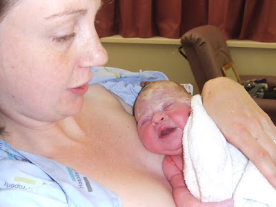 Here are a few photos, ranging from 5 minutes after the birth, to 3 hours after.