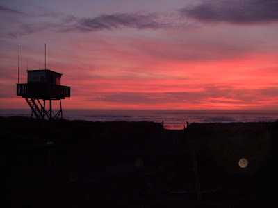 Last night we had a cluster surf / BBQ night out at the Life Saving Club at North Piha, which is out on the West Coast - we had great fun surfing, eating, and chatting and we watched a stunning sunset - the sky was literally bright pink; my photo doesn't do it much justice I'm afraid, but it's not a bad one!