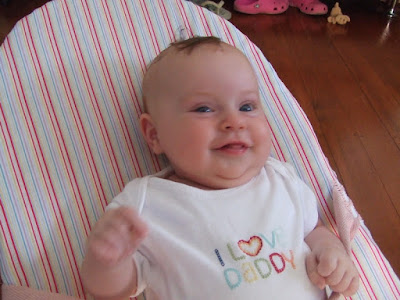 Gracie has been on great form recently - she is now at large, sleeping through from 10-7 which is bliss!!! We're loving watching her grow and see her discover new things everyday. She's now well over 13lbs which is fab - as Matilda says, she is very chumpy!!!