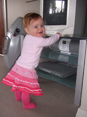 Gorgeous Gracie! Is gracie pointing at Ugly Naked Guy with Joey too? She is looking so grown up! Love the house video too! What an awesome pad, can't wait to come and stay! Love you guys, Em and Dan.xxxx