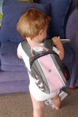 Gracie wearing Matilda's back pack!